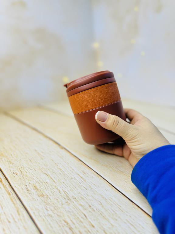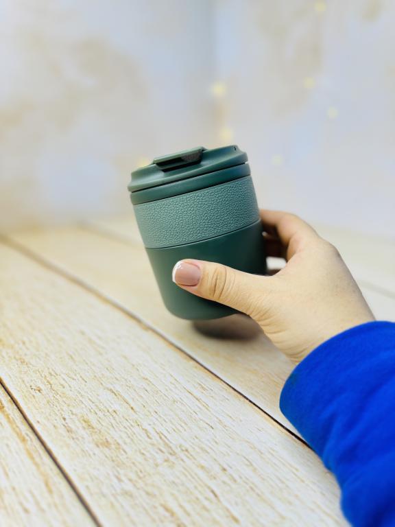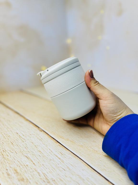 تراول ماگ دورچرمی لبه کج کوچک آسان نوش دار حجم 280 میل برند COFEE استیل 316 لبی اسان نوش ابعاد حدودا 11*8 مناسب برای نوشیدنی سرد و گرم مناسب قهوه چای نسکافه